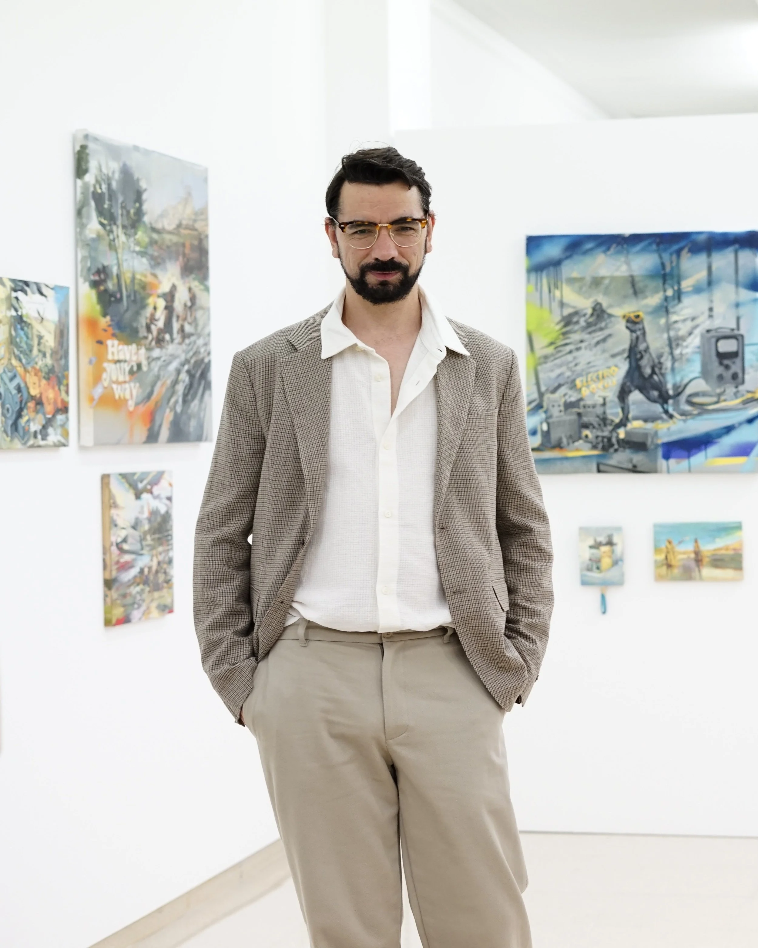 Mi trabajo es el punto exacto donde la técnica clásica se divierte con la cultura pop. En el estudio, el óleo no es solemne; es una herramienta que se mezcla con el spray, el collage y, sobre todo, una buena dosis de humor e ironía.